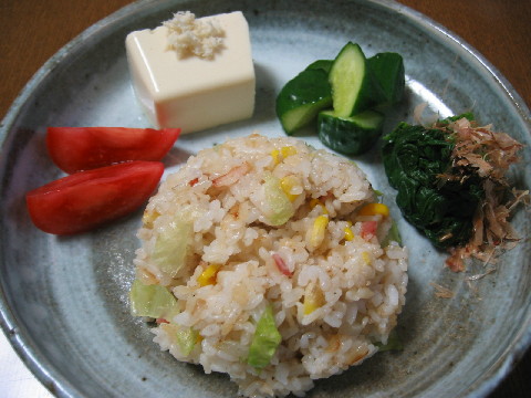 ◆ポークシチュー サラダ(トマト・レタス) 白米(乾燥パセリ) きゅうりの浅漬け