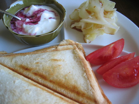 ◆ホットサンド トマト ヨーグルト&ハスカップ 蒸しキャベツ(昨日の残り)