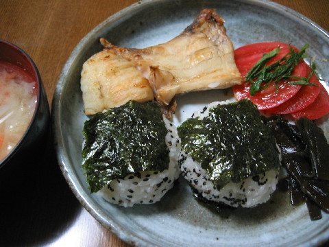 ◆ごま塩おにぎり 鱈 トマト&シソ 白菜と人参のお味噌汁