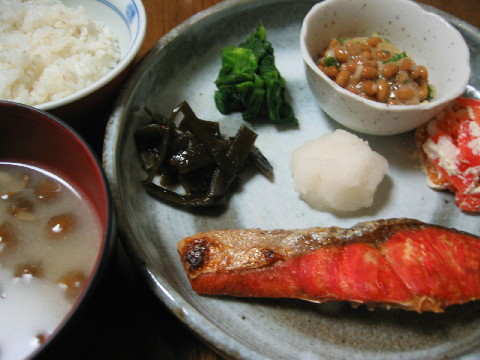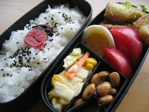 今日のお弁当 メインはちくわの磯辺揚げです。 ◆ちくわの磯辺揚げ レタス 茹でたまご トマト コールスローサラダ 昆布豆 白米・梅干し・黒ゴマ 晩ごはん たまには油抜きの食事をしなくちゃ。 人参と豆腐の白和えを実家からいただきました。 昔、大好物だったのを思い出します。 さっぱり和食もおいしいですね。 ◆紅鮭 大根おろし 昆布の煮物 小松菜のおひたし 納豆(シソ・ネギ) 豆腐と人参の白和え なめこのお味噌汁 麦入りごはん