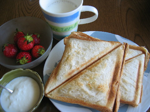 ◆ホットサンド(玉子・チーズ) ヨーグルト イチゴ ホットミルク