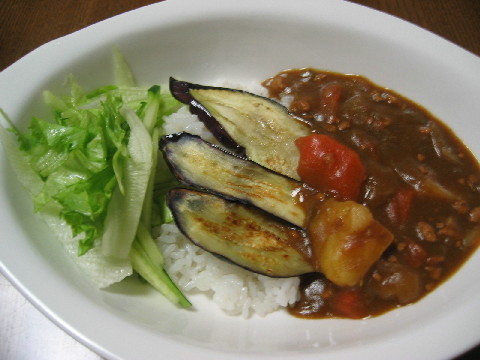◆カレーライス(挽き肉&茄子) サラダ(レタス・きゅうり)