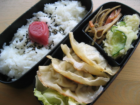◆焼き餃子 レタス きんぴら ポテトサラダ 白米 黒ゴマ 梅干し