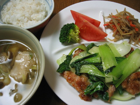 ◆豚肉と青梗菜の炒め物 きんぴらごぼう トマト・ブロッコリー
