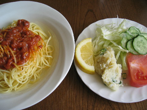 何か簡単に食べられる物をと市販のミートソースを購入。