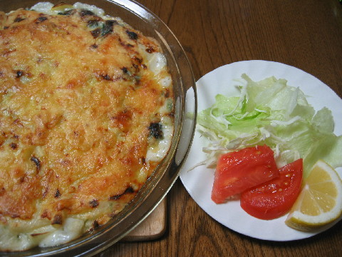 ◆ホウレン草と玉ねぎのグラタン サラダ(キャベツ・レタス・トマト・レモン)