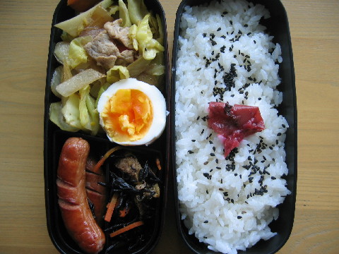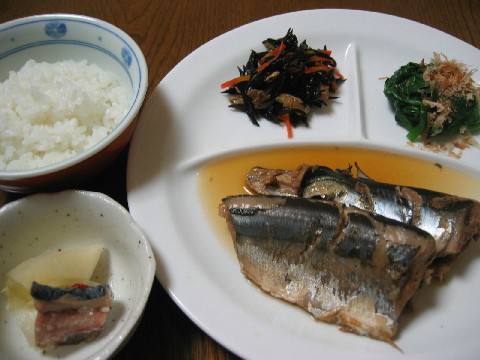 土日は外食したり、夫の実家へ行ったりで、 ご飯をあんまり作りませんでした。 カレーライスを作りましたが写真を撮るのを忘れちゃいました。 今日のお弁当 月曜日、今週もお弁当作り頑張りましょう。 ◆野菜炒め 半熟卵 ウインナー 五目ひじき 白米 梅干し 黒ゴマ 晩ごはん 秋刀魚の煮付けです。 ちょっと煮崩れしちゃいました^^; ◆秋刀魚の煮付け 五目ひじき ニラのおひたし 漬物 白米