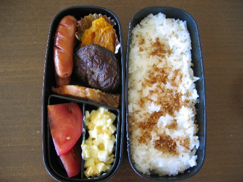 ◆かぼちゃの煮物 ◆ウインナー ◆焼きしいたけ 紅鮭 ◆たまごサラダ トマト ◆白米・ふりかけ