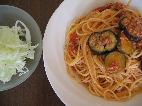 ◆トマトと茄子のミートスパゲッティ ◆ノンオイルサラダ