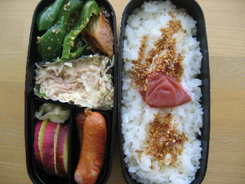 ◆ピーマンの胡麻和え ◆紅鮭 ◆シーチキンとキャベツのサラダ ◆ウインナー