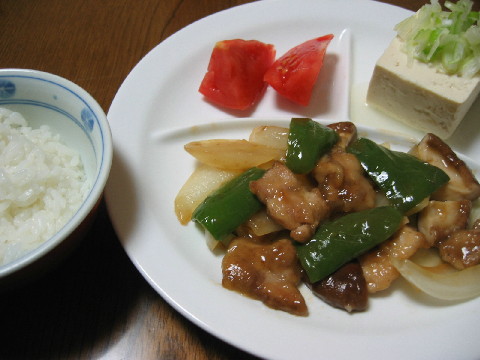 ◆鶏肉・ピーマン・玉ねぎ・シイタケの炒め物