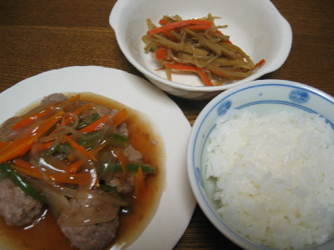 ◆野菜と肉団子の甘酢あんかけ ◆きんぴらごぼう ◆白米