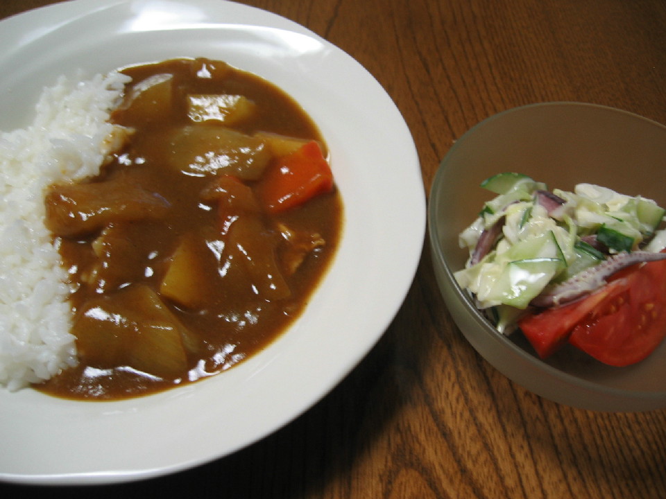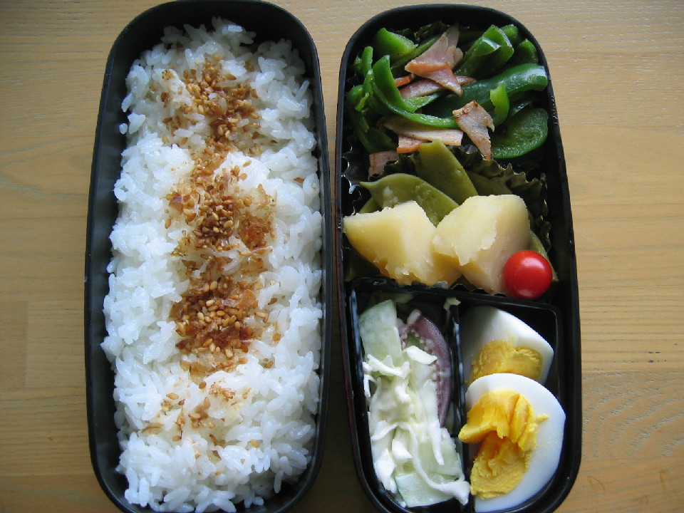 金曜日、明日はお弁当がないと思うとうれしいですね^^ 今日のお弁当 冷蔵庫にあるもので作りました。 ◆ハムとピーマンの炒め物 ◆いんげんとジャガイモの醤油煮 ◆ゆでたまご ◆イカゲソとキャベツのサラダ ◆プチトマト(ベランダ菜園) ◆白米・ふりかけ 晩ごはん カレーライスです。 ガーっと煮るだけです。楽チン^^ ◆カレーライス ◆イカゲソサラダ(朝のお弁当の残りもの)・トマト