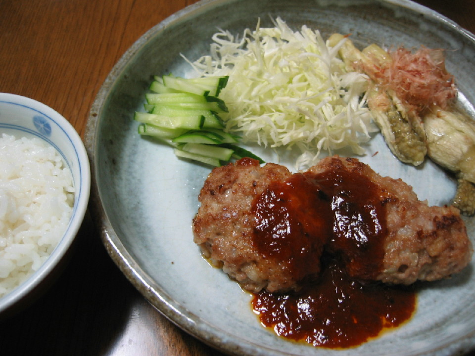◆ハンバーグ ◆焼き茄子 ◆キャベツときゅうりの千切り ◆白米