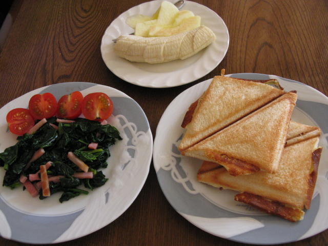 ホットサンド ホウレン草のソテー 果物