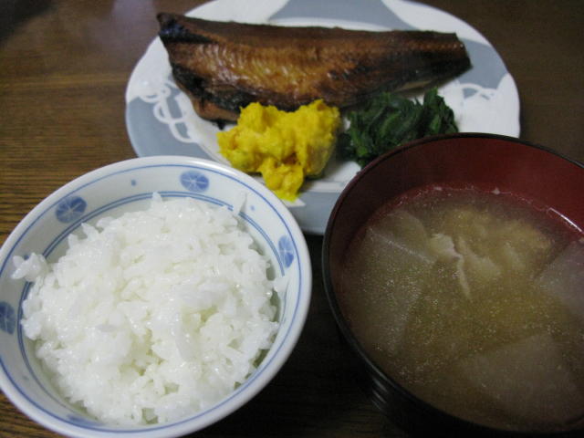 ご飯 豚汁 焼き魚 ホウレン草のおひたし かぼちゃサラダ