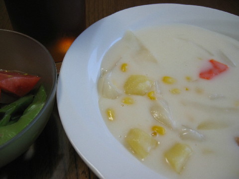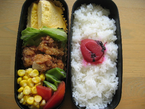 今日のお弁当 まんねりだわ~^^; ◆玉子焼き ◆昨日の唐揚げの残り ◆サラダ(いんげん・トマト・コーン) ◆白米・梅干し 晩ごはん コーンがたくさんあるのでシチューにしました。 ◆シチュー ◆サラダ(いんげん・トマト)