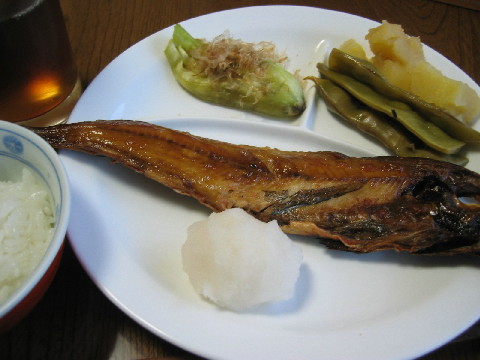 ◆ほっけの一夜干し 大根おろし ◆焼き茄子 ◆いんげんとジャガイモの煮物 ◆白米