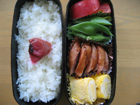 ◆玉子焼き ◆ウインナー ◆サラダ(もろっこインゲン・トマト) ◆白米・梅干し