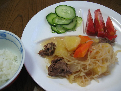 ◆肉じゃが ◆トマト ◆きゅうりの酢の物 ◆白米