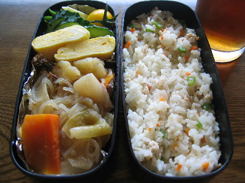 ◆炒飯 ◆肉じゃが ◆玉子焼き ◆サラダ(きゅり・レタス・プチトマト) ◆麦茶