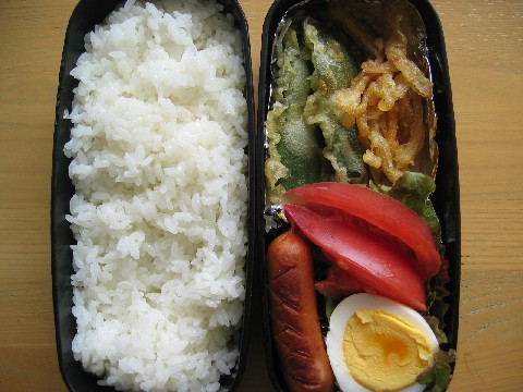 先週土曜日から今日までの食費は5481円でした。 金曜日、冷蔵庫の掃除を兼ねて作りました。 今日のお弁当 ◆玉ねぎと人参の掻揚げ ピーマンの天ぷら ◆トマト・レタス・ゆでたまご ◆ウインナー ◆白米 晩ごはん 夫のリクエストでカレー。 たまに食べたくなるみたい。 ◆カレーライス