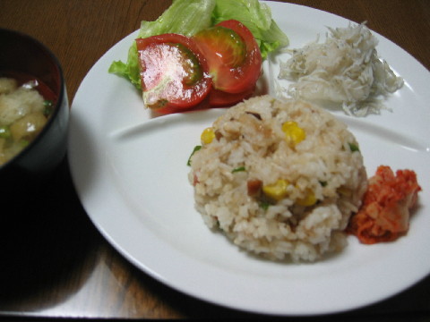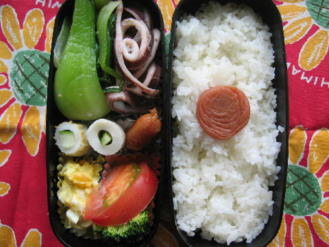 明日はお弁当を作らなくてもいいと思うとホッとします。 たいしたおかずは作っていませんけどね^^; 朝、ゆっくりできることがうれしいです。 今日のお弁当 ◆イカと青梗菜の炒め物(ニンニク風味) ◆ちくわきゅうり ◆ウインナー ◆たまごサラダ ◆トマト・ブロッコリー ◆白米・梅干し 晩ごはん 冷蔵庫にあるものを使って作りました。 ◆炒飯 キムチ ◆しらすと大根おろし ◆トマト・レタス ◆お味噌汁(ネギ・油揚げ)