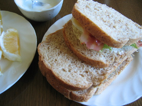 朝食から。 金曜日に焼いたパンを使ってサンドイッチ。 ◆胚芽パンのサンドイッチ(レタス・トマト・チーズ・ベーコン) ◆河内晩柑(オイシックス 酸っぱくなくておいしかった) ◆ヨーグルト 牛乳 お昼ごはん これから冷たい麺が多くなります。 竹ざるが裏がえしでした^^; ◆ざるそば ◆サラダ ◆つゆ(シソ・ネギ・とろろ) 晩ごはん 夕方、出かける用事があったので帰ってきてからすぐ食べられる物を作りました。 そんな時はカレーライスが一番♪ ◆カレーライス