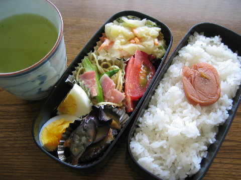 ◆ゆでたまご ◆茄子のピリカラ炒め ◆白米 梅干し お茶