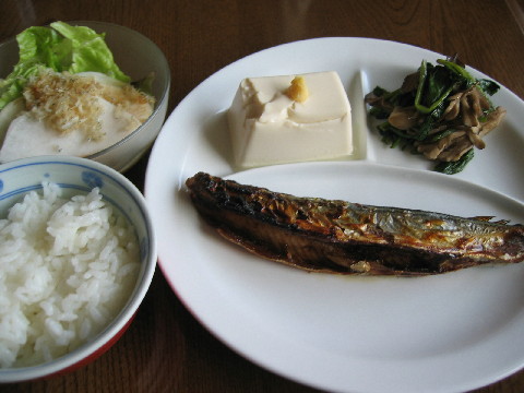 ◆サンマの塩焼き ◆冷奴(生姜) ◆舞茸とホウレン草のバター炒め
