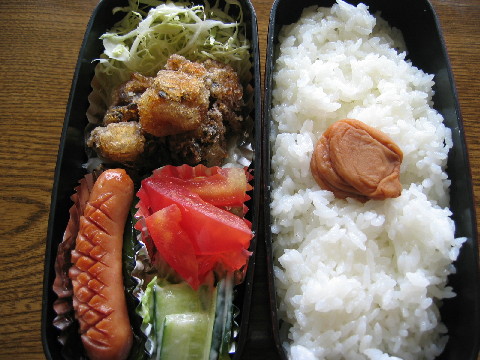 ◆昨日の残りの天ぷら ◆白米 梅干し