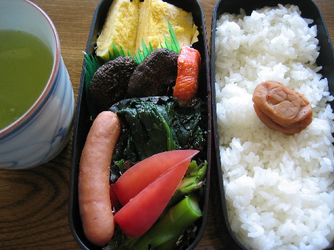 今日のお弁当 ◆玉子焼き ◆紅鮭 ◆焼きしいたけ ◆ウインナー ◆ホウレン草の胡麻和え ◆トマト・アスパラ ◆白米 梅干し お茶 晩ごはん 少し手抜き^^; 切っただけです。 もっと野菜を取らないと! ◆お刺身(イカ・タコ) 山わさび ◆ホウレン草のおひたし ◆トマト・シソ ◆イカの醤油煮 ◆白米