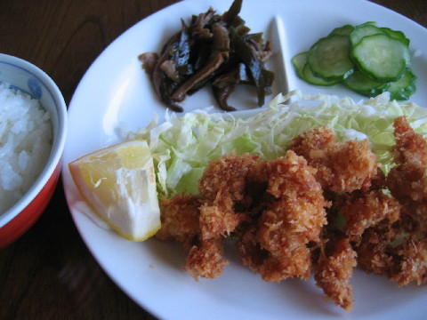 今日の晩ごはんはエビフライ。