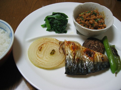 ◆サバの塩焼き 焼きピーマン 焼きシイタケ 焼き玉ねぎ